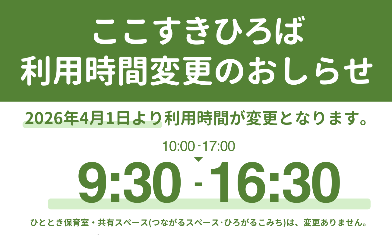 ここすきひろばは、0歳から未就学までの乳幼児とその保護者が、思い思いにつどい、あそび、交流できる施設です。